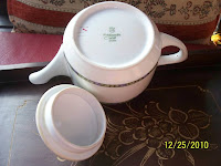 Hutschenreuther merupakan nama keluarga yg berasal dari daerah Bavaria Utara Jerman, pembuat porselen sejak tahun 1814. "Hutschenreuther Selb Bavaria" merupakan salah satu produsen porselen Jerman yang terkenal akan kualitasnya, MUAHAL harganya dan beragam jenisnya. Ceret/Teapot ini berasal dari kumpulan set "Ella" yang sudah bercerai berai.... Bentuk dan motifnya sederhana, tapi kalau diperhatikan motifnya yang 'sedikit', sangat detail dan indah. Karena usianya (dr logo "J-R" berarti produksi thn 1856-1920) sudah mulai ada spot pada porselen di ujung dalam corongnya. Diameter 12cm, tinggi tanpa tutup 9cm.
